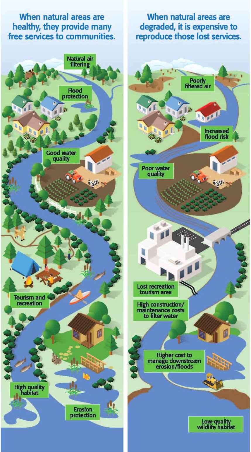 - Amélioration de l’environnement (qualité de l’air, qualité de l’eau, température)
